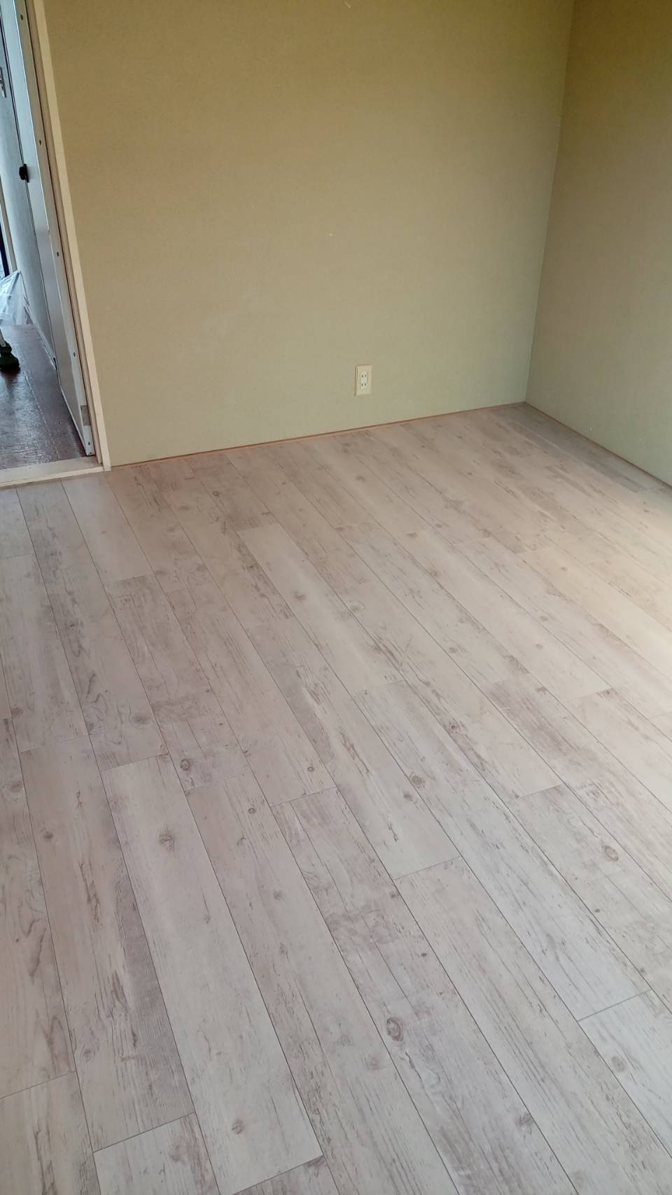 現状回復工事 和室から洋室へフロアタイル仕上げ キッチンシンクのみ本体交換【水栓】本体交換含む 吊戸棚交換 天井破損修理 ハウスクリーニング 2DK 専用庭の除草作業
