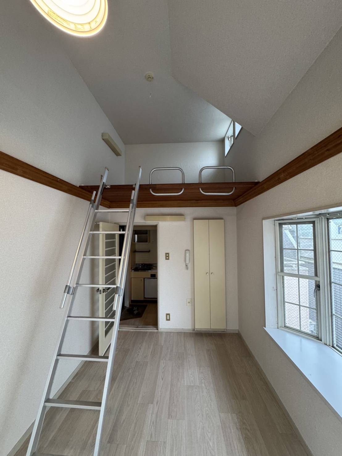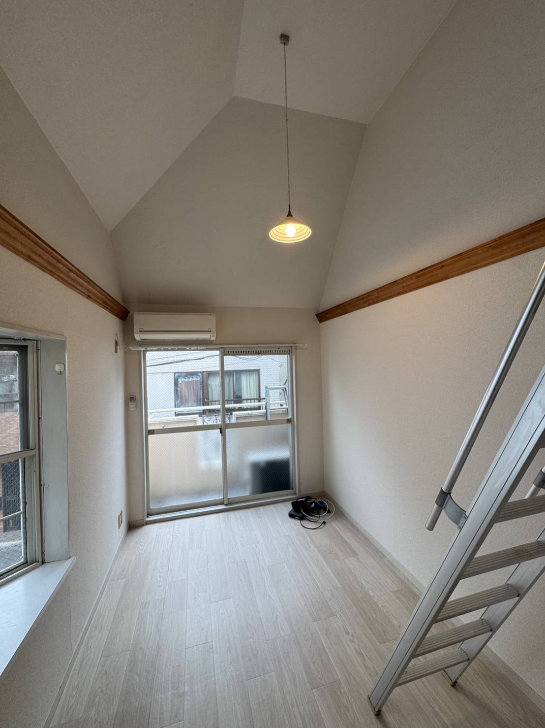 葛飾区金町某賃貸アパート 現状回復工事 エアコンクリーニング ハウスクリーニング クロス天井・壁ALL張替60㎡ しびれる忙しさ! 4日間で完了! 次の入居決定の為、かなりタイトな工事でした。 ロフトがあるので高さあり…もう少し工期頂きたい・・・