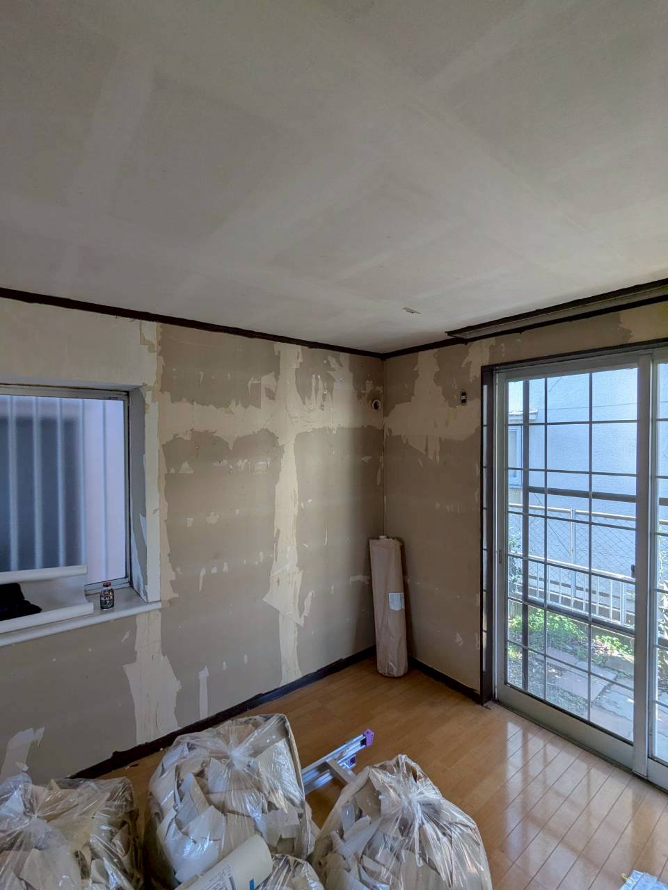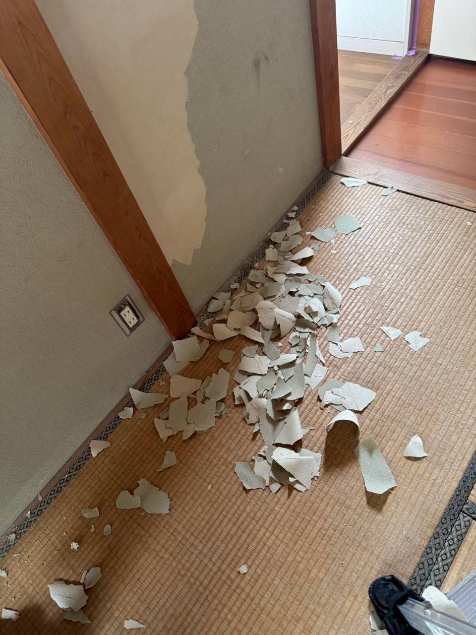 中古戸建てご購入のお客様よりご依頼頂き、内装工事! 3月19日より現場スタートしましたが、なんと・・・ 既存クロスを張替えするためクロス剥がしをしたところ・・ 酷い!クロス2重張り施工でした。 同業者として悲しい・・・ こんな施工していたらいつかは必ずお仕事もらえなくなりますよね! 約330㎡の張替えでしたが、ほぼ2重張りでした。 泣けてくる!